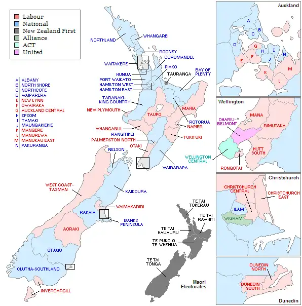 - ^ New Zealand Votes: The General Election of 2002 p22 edited by Jonathan Boston, Stephen Church, Stephen Levine, Elizabeth McLeay & Nigel S. Roberts (2003, Victoria University Press, Wellington) ISBN 0-86473-468-9