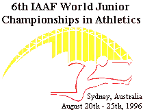 - ^ Peters, Lionel; Magnusson, Tomas, WORLD JUNIOR CHAMPIONSHIPS WJC - 1996 Sydney AUS Aug 20-25, WORLD JUNIOR ATHLETICS HISTORY ("WJAH"), archived from the original on 31 October 2013, retrieved 13 June 2015