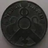 The 2+1⁄2-cent coin minted in the Netherlands during World War II was made of zinc, and worth 1⁄40, or .025, of the Dutch guilder. It was designed by Nico de Haas, a Dutch national-socialist, and struck in 1941 and 1942.