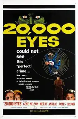 20,000 Eyes is a 1961 American drama film directed by Jack Leewood, written by Jack W. Thomas, and starring Gene Nelson, Merry Anders, James Brown, John Banner, Judith Rawlins and Robert Shayne.[1]