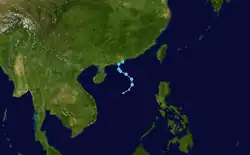 On May 15, a monsoonal trough associated with a low pressure area formed north west of the Philippines. On May 17 the low pressure area started to drift across the northern Philippines, and rapidly intensified into a tropical storm before quickly dissipating due to vertical wind shear on May 20. The remnants were soon absorbed by a non-tropical low on May 22.