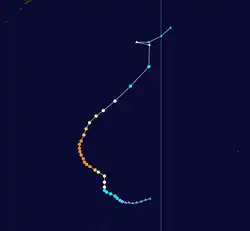 | Peak intensity | 45 km/h (30 mph) (10-min); 996 hPa (mbar) |