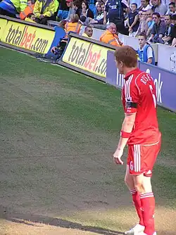 Liverpool faced Crystal Palace in their subsequent match at Selhurst Park, which ended in disappointment as a 1–0 defeat meant they were four points behind Everton in fourth place.[74] With three games left, Middlesbrough were the next opponents for Liverpool at Anfield. The match started poorly for Liverpool as they conceded within the first four minutes when Szilárd Németh scored. Liverpool equalised in the 52nd minute when Gerrard scored from 35 yards (32 m) from Middlesbrough's goal, but they were unable to find a second goal. The result meant Liverpool were three points behind Everton in fourth place after they lost 2–0 to Fulham.[75][76] A 3–1 defeat to Arsenal a week later at Highbury meant that Liverpool were unable to finish in fourth place above rivals Everton.[77] Aston Villa were the opponents for Liverpool's final game of the season at Anfield. Two goals from Cisse secured a 2–1 victory which meant Liverpool finished the season in fifth place with 58 points, three points behind rivals Everton.[78]