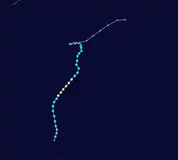 The Accumulated Cyclone Energy (ACE) index of this season amounted to 60% above the normal level for Pacific typhoon seasons, calculated by Colorado State University using data from the Joint Typhoon Warning Center to be 480.6 units.[5] This makes the season the second-most intense Pacific typhoon season in recorded history, only after 1997.[6] Broadly speaking, ACE is a measure of the power of a tropical or subtropical storm multiplied by the length of time it existed. It is only calculated for full advisories on specific tropical and subtropical systems reaching or exceeding wind speeds of 39 miles per hour (63 km/h).