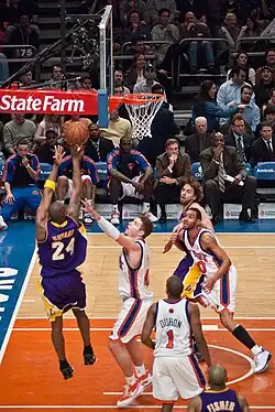 In a road game against the New York Knicks on February 2, Bryant scored 61 points on 61% shooting in a 126–117 win. Bryant's scoring outburst set a record for the most points ever scored at the historic Madison Square Garden, breaking Bernard King's record he remained for nearly five years until Carmelo Anthony broke his own record at this arena scored 62 points in 2014.[32] Bryant's performance was also the highest single game point total of the 2008–2009 season in the NBA.[32]