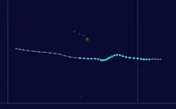 The Central Pacific basin was also expected to be slightly below average, with three to five tropical cyclones expected to form or cross into the area. However, it was slightly more active than expected, the number of three to five was exceeded, as seven tropical cyclones moved into or formed in the Central Pacific.[5]