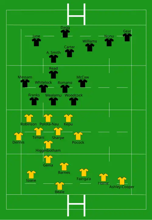 | Try: McCabe 60' c Ioane 69' c Con: Barnes (2/2) 60', 69' Pen: Barnes (2/4) 25', 49' Beale (1/1) 79' | Report[18] | Try: Leonardi 50' m Cabello 52' m Pen: Hernández (3/4) 3', 29', 57' |