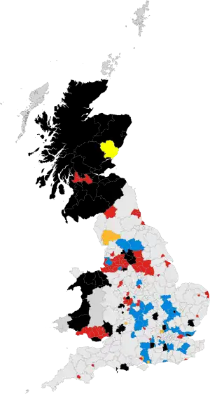 19. ^ Excludes Anglesey in vote and seat data. See individual detailed articles below for the breakdown; this is a summary of the overall result.