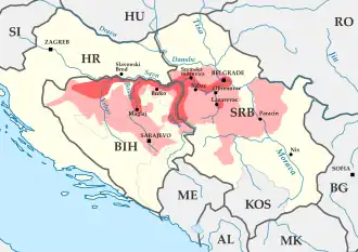 Assessments of the damage range up to €3.5 billion for Serbia, Bosnia and Herzegovina.[15] Damage in Serbia, jointly estimated by EU, World Bank group and UN officials, stands at 1,55 billion euros.[16] Officials in Bosnia stated that the damage could exceed that of the Bosnian War.[17] The events initiated a large international aid campaign, with numerous countries, organizations and individuals donating humanitarian, material and monetary support for the affected areas.