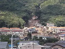 On 20 August 2014, Hiroshima Prefecture in Japan was struck by a series of landslides following heavy rain. The rain triggered 166 slope failures which included 107 debris flows and 59 shallow slides.[2] The landslides hit residential areas including Kabe, Asakita Ward, Yagi, Yamamoto, Midorii, and Asaminami Ward.[3] Of these areas, the Asakita and Asaminami Wards in Northern Hiroshima were hit the hardest.[2]