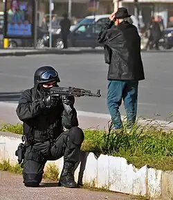 On 24 June 2015, a member of the Albanian counter-terrorist force RENEA was shot and killed in the town, and two other soldiers wounded.[8] A car containing gunmen had been stopped at a checkpoint, with attackers then opening fire on the soldiers from a nearby house.[8] Following the murder of the police officer, a new operation commenced that involved 400 police officers which resulted in the arrest of 8 people.[9]