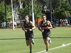 Adam Oxley (left) and new recruit Levi Greenwood running during pre-season training in December 2014