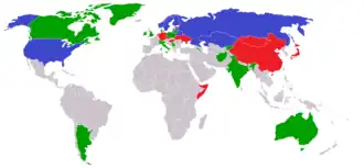 Green: members of the Federation of International Bandy not participating in this year's World Championship
