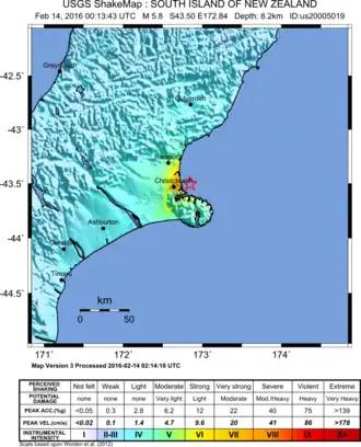 2. ^ "Large quake off the coast of Christchurch". GNS Science. Retrieved 16 February 2016.