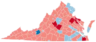 The 108 delegates (95 pledged delegates and 13 super delegates) from Virginia to the Democratic National Convention were allocated in this way. Among the pledged delegates, 62 were allocated based on the popular vote in each congressional district. The 33 at-large delegates were then allocated based on the statewide popular vote.[4]