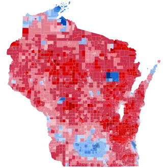 In the general election, Donald Trump unexpectedly won Wisconsin, defeating Clinton by a margin of 0.77%, with 47.22% of the total votes to 46.45%, the lowest percentage of victory since 2000. Trump's victory in Wisconsin was attributed to overwhelming and underestimated support from white working-class citizens in the state's rural areas, a demographic that had previously tended to either vote for the Democratic candidate or did not vote at all.[2][3][4] As of the 2024 presidential election, this is the last time that Door County voted for the Republican candidate, and the only time since 1960 that the Democratic presidential nominee won the nationwide popular vote without winning Wisconsin.
