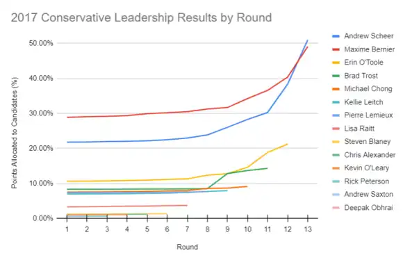 372. ^ "Conservative leadership camps scramble for final votes amid ballot snags". CBC News. May 26, 2017. Retrieved July 8, 2017.