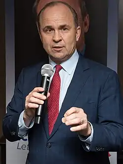 Subsequent to the election, fourth placed candidate Brad Trost and his campaign were fined $50,000 by the Conservative Party of Canada for allegedly leaking the party's membership list to the National Firearms Association. Trost denied that he or any of his staff leaked the list.[24] On February 11, 2019, the Conservative Party released a statement from its Leadership Election Organizing Committee (LEOC) which concluded: "In short, LEOC does not believe there is evidence that the Trost Campaign was responsible for leaking of the membership list...."[25] The fine was therefore removed from the Brad Trost Campaign. Trost went on to lose renomination as the party candidate for his riding during the 43rd Federal election on March 10, 2018, to Corey Tochor, former speaker of the Saskatchewan Legislature.[26]