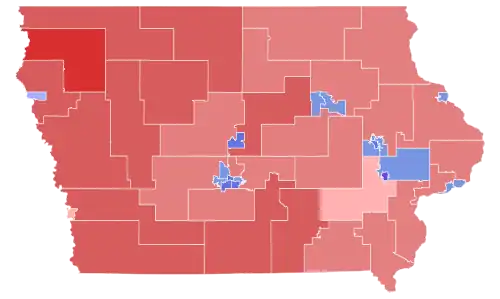 Most experts and pollsters considered this race and the concurrent presidential race as a tossup due to incumbent president Donald Trump's low approval ratings and Ernst's own popularity dropping in polls, partly due to a viral moment in a debate where she did not know the break-even price for soybeans.[2] Despite this, Ernst was reelected by a larger-than-expected 6.6 points, while Trump simultaneously won the state with a bigger yet similarly unexpected margin of victory. Ernst carried an overwhelming majority of the state's counties including many rural ones, while Greenfield carried only eight counties: Polk, Linn, Scott, Johnson, Black Hawk, Story, Cerro Gordo and Jefferson.[3]