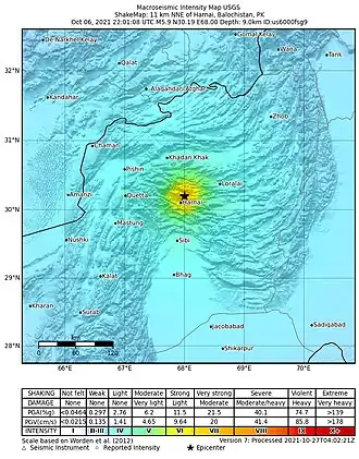 6. ^ a b c "M 5.9 – 15 km NNE of Harnai, Pakistan". United States Geological Survey. 7 October 2021. Retrieved 7 October 2021. Public Domain This article incorporates text from this source, which is in the public domain.