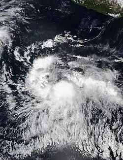 In early May, the passage of a convectively-coupled Kelvin wave (CCKW) enhanced the eastern Pacific monsoon trough, leading to an area of disturbed weather. This disturbance interacted with a Gulf of Tehuantepec gap wind event, which led to the formation of an ill-defined low-pressure area. Despite a marginal environment of wind shear and dry air, the system slowly organized and developed into a tropical depression around 06:00 UTC on May 9. Six hours later, it intensified into Tropical Storm Andres, becoming the earliest tropical storm on record in the East Pacific basin. Andres maintained peak winds of 40 mph (64 km/h) as it curved north-northwest, and the compounded effects of colder waters and drier air atop moderate wind shear instead caused the system to begin weakening. All associated convective activity dissipated by 06:00 UTC on May 11, when Andres was downgraded to a remnant area of low pressure. The low curved west on May 12 and dissipated later that day.[10]