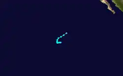 On August 18, the NHC began observation of a system well to the south of the coast of Mexico with potential for some slow development.[78] Four days later, on August 22, a broad area of low pressure producing disorganized showers and thunderstorms primarily west of its center formed far south of the southern tip of the Baja California peninsula.[79] By the afternoon of August 25, the tropical disturbance had developed a well-defined surface circulation with 45 mph (75 km/h) maximum sustained winds, and was upgraded to Tropical Storm Hector.[80] Northerly wind shear and passage over cool SSTs, left in the wake of Hurricane Gilma, prevented Hector from strengthening much.[81] Hector strengthened slightly on August 26 and reached its peak intensity, with maximum sustained winds of 60 mph (95 km/h) and minimum central pressure of 998 mbar (29.5 inHg).[82] Continued unfavorable environmental conditions caused Hector to gradually become less organized thereafter, with moderate wind shear exposing Hector's low-level circulation center.[83][84] Hector continued to weaken, and the storm opened into a trough early on August 29.[85]