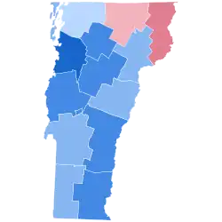 Trump managed to narrowly flip Orleans County, the first time for a presidential Republican candidate since 2000, and also the first time a Republican had won any county other than Essex County since then. Vermont was once again the most Democratic state in the nation, only the second occasion in the state's history (behind 2020) in which it was the strongest for the Democrats,[24] and the first time since 1956 in which it was the strongest state for either party in back-to-back elections.[25]