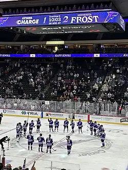 Despite the Charge finishing third in the regular season, the first place Montreal Victoire chose Ottawa as their semifinal opponents.[2] The Charge went on to upset the Victoire in four games.[8] The Charge's only loss was in a marathon game held on Mother's Day, which Montreal won at 15:54 in the fourth overtime, the longest game in PWHL history.[9]