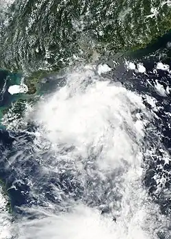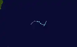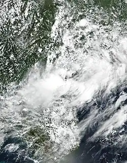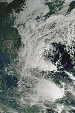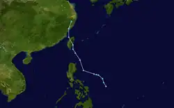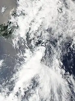 On June 24, the JMA reported the development of another tropical depression east of the Philippines. The JTWC later designated it as 03W on the following day. The storm moved toward southern China, making landfall along the eastern coast of the Leizhou Peninsula and dissipating inland on June 26.[6] It caused 18 fatalities in Northern Vietnam and resulted in minimal damage.