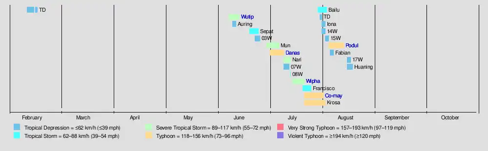 Typhoon PodulTyphoon Co-mayTropical Storm Wipha (2025)Typhoon Danas (2025)Tropical Storm Wutip (2025)
