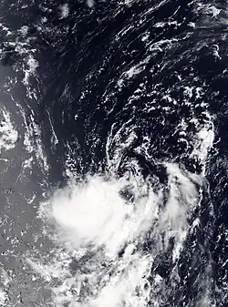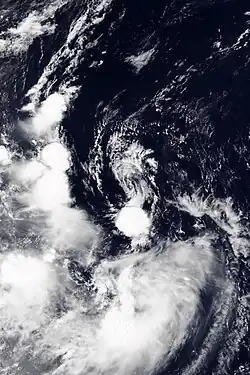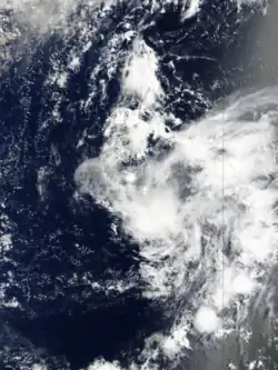 Early on August 2, the weakening Hurricane Iona entered the basin from the Central Pacific as a tropical depression. As it crossed the International Date Line, both the JMA and JTWC began issuing advisories on the system, recognizing it as a depression within the Western Pacific. The JTWC discontinued warnings shortly thereafter, while the JMA continued to monitor Iona until its dissipation on August 4.