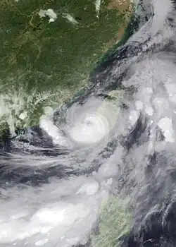 Typhoon Danas at its peak intensity before making landfall in Budai, Chiayi County, Taiwan on July 6