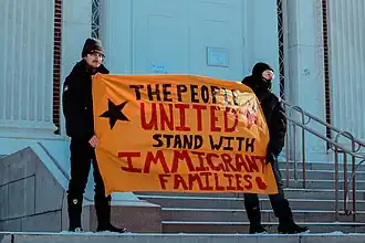On January 25, a march in Aurora was organized by the Metro Denver Sanctuary Coalition in protest against ICE raids.[23] Over 2,000 protesters[24] came out to support the cause and rally outside the state capitol building. This protest follows a series of intense ICE raids targeting neighborhoods and residential areas. There are also several volunteers,[25] like those from the Immigrant Legal Resource Center, that offer resources, such as legal services and literature on legal rights, to those at risk.