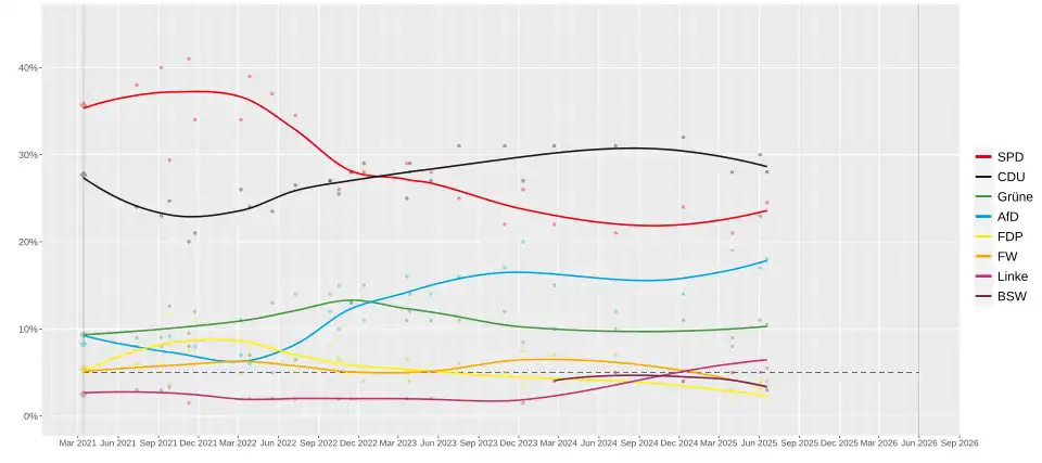 SPD CDU Grüne AfD FDP FW Linke BSW Others Lead