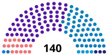 The following is a list of 140 members elected to the parliament in the 2013 general election. It consists of the representative's name, party, and they are divided according to the 12 constituencies of Albania to which they belong,[11] in addition to noting members assigned to government, resigned or deceased, with their parliamentary functions, chair and deputy chairs of standing committees and parliamentary leaders of the parties.[12]