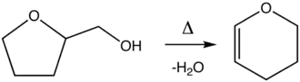 Dihydropyran is prepared by the dehydration of tetrahydrofurfuryl alcohol over alumina at 300–400 °C.[2] THFA is itself prepared from tetrahydro-2-furoic acid.