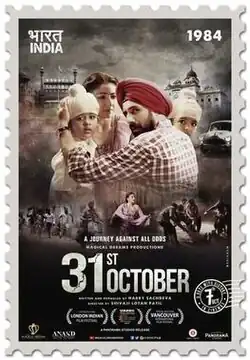 31st October is an Indian Hindi-language historical action drama film directed by Shivaji Lotan Patil and written by Amit Tuli and Harry Sachdeva and produced by Sachdeva. The film, based on a true story, focuses on the aftermath of Indira Gandhi's assassination which occurred on 31 October 1984.[1]