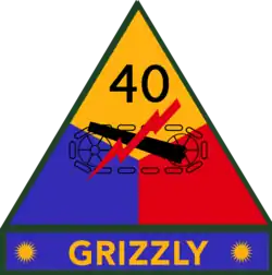 1. ^ Nathaniel T. Robertson (17 February 2001). "The 40th Infantry Division's March to the Korean War". California State Military Museum. California State Military Department. Retrieved 21 March 2013. The next day on 1 July 1954, the 40th Infantry Division, California Army National Guard, combined with the 111th Armored Cavalry Regiment, California Army National Guard, and formed the 40th Armored Division (*Grizzly*), California Army National Guard.