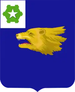 - Shield: Azure, the head of a wolverine erased Or; on a canton Argent a six-bastioned fort Vert charged with a mullet of the third (for the 36th Infantry).