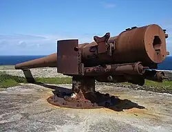Despite the proliferation of artillery units of the Volunteer Force around the coasts of the United Kingdom in the 19th Century, none was formed in Shetland, the role being fulfilled by the Royal Naval Reserve, who trained gunners at Fort Charlotte in Lerwick. In 1880 the War Office proposed to convert the Lerwick-based Orkney & Shetland Rifle Volunteers into artillery, but this was never carried through.[1] In 1926 it was decided that the responsibility for coast defences in the UK would rest solely with the part-time Territorial Army (TA), but at that date there was no TA presence in Shetland. Only major ports were given permanent gun batteries. Lerwick was defined as a Class C port, to have defences installed after the outbreak of war.[2][3][4]