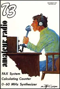 73 Magazine (also known as 73 Amateur Radio Today) (OCLC 22239204) was a United States–based amateur radio magazine that was published from 1960 to 2003. It was known for its strong emphasis on technical articles and for the lengthy editorials in each issue by its founder and publisher, Wayne Green. The magazine title, 73, (Morse: −−••• •••−− ) means "best regards" in amateur radio lingo.
