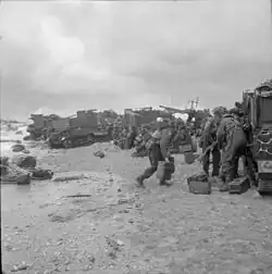 Elements of 80th AA Bde landed with the leading waves on D-Day (6 June), divided into four assault groups each under the command of one of the regimental headquarters (RHQs):[9][11][13][14][15][16][17][18]