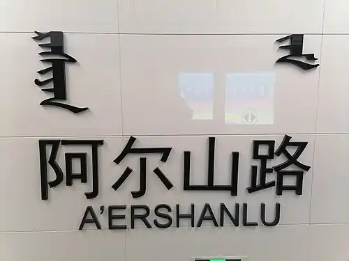 A'ershanlu Station (Chinese: 阿尔山路站) is a station on Line 2 of the Hohhot Metro.[1] It opened on 1 October 2020,[2] and is the southern terminus of Line 2.