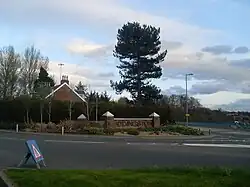 At its westernmost point, the A721 starts at the entrance to Daldowie Crematorium on the south-eastern edge of Glasgow, where its designation is used initially for the overbridge access for Junction 3A of the M74 motorway (between Glasgow and Carlisle), and which also connects to the south end of the M73 motorway towards Cumbernauld. Immediately north of the motorway is the Black Bear Roundabout at Broomhouse which is the eastern termination of the A74 road within Glasgow. The A721 follows the same route eastwards as a dual carriageway over the North Calder Water – the boundary entering North Lanarkshire – and under the M73 Maryville Interchange. There is a separate onslip for the M74 southbound (which the main Junction 3A does not provide, the usual spot on the overbridge being taken by the M73 northbound slip) prior to the 'three tins' roundabout, where the northbound option is the B7001 (Old Edinburgh Road) to Birkenshaw (some older maps still show this section as the A74). There is soon a southbound junction for the B758 towards Blantyre, followed by the Powburn Toll, previously the point where major routes towards Edinburgh and Lanarkshire diverged.[2] Its site is nowadays marked by a large welcome sign for Uddingston,[3] although the town itself lies on the other side of the motorway. The main carriageway heads over the M74 into Uddingston and South Lanarkshire as the B7071, but the A721 heads east as New Edinburgh Road, skirting the southern parts of Tannochside and Viewpark, and featuring a junction for the B756 heading south back towards Uddingston or to Bothwell.