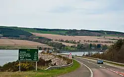 Between Perth and Inverness, a project is underway to upgrade the remaining single carriageway sections of the A9 to a dual carriageway. This was due to the response in which overtaking can be dangerous and because a head-on collision can occur due to the lack of crash barriers.[13] This started in 2015 and was due to be finished in 2025, but delays to the project meant that meeting the original deadline was going to be impossible.[14] This project was announced in 2011. Only two out of the eleven sections have been completed as of December 2023. In October 2024, preparatory works began on the six mile section between Tomatin and Moy, with an expected cost of £308 million.[15][16] Full construction work is to begin in spring 2025 and due to finish in three years time. A similar scheme is in place for the A96 between Aberdeen and Inverness.[16] Tay Crossing to Ballinluig sections (close to Perth) is under tender and should start construction in 2025.[17][18]