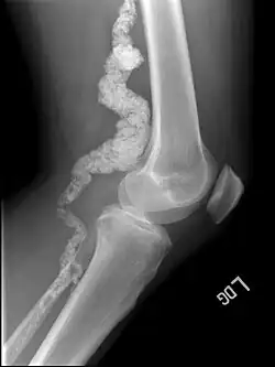 3. ^ Markello T. C.; Pak L. K.; St Hilaire C.; Dorward H.; Ziegler S. G.; Chen M. Y.; Gahl W. A. (2011). "Vascular pathology of medial arterial calcifications in NT5E deficiency: Implications for the role of adenosine in pseudoxanthoma elasticum". Molecular Genetics and Metabolism. 103 (1): 44–50. doi:10.1016/j.ymgme.2011.01.018. PMC 3081917. PMID 21371928.