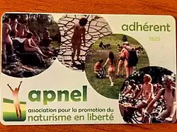 The "Association Pour la Promotion du Naturisme en Liberté" (APNEL) is a French association with international scope, registered under current statutes and governed by the law of 1 July 1901 and the decree of 16 August 1901.[2]