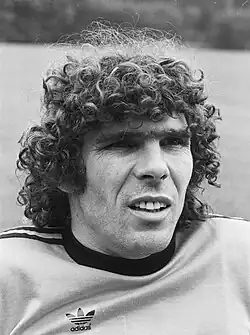 After finishing third in the previous season of the Eredivisie, AZ first competed in European football competition in 1977–78.[2] In the first round of the UEFA Cup, AZ immediately secured two historic victories against FA Red Boys Differdange of Luxembourg. At home at the Alkmaarderhout, they secured their biggest-ever win in European competitions with an impressive 11–1 triumph (also marking their largest victory in any official match).[3] Additionally, their 5–0 victory in the away leg remains unbeaten in European contests. Their first European journey came to a halt in the second round when they faced Johan Cruyff and Johan Neeskens' Barcelona. The first leg at home ended in a 1–1 draw, and the same result was repeated at Camp Nou. Even after extra time, the score remained unchanged, forcing a penalty shootout. Barcelona excelled in their penalty kicks, converting all five, while AZ faltered when Kristen Nygaard missed the third penalty in the series, resulting in a 5–4 loss.[4][5]