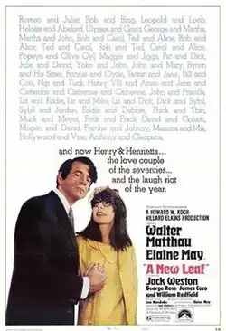 A New Leaf is a 1971 American black comedy film written and directed by Elaine May in her directorial debut, based on the short story "The Green Heart" by Jack Ritchie. It stars May, Walter Matthau, Jack Weston, George Rose and James Coco.[1]