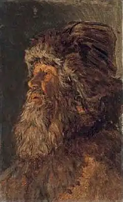 In the fall of 1870, Maximov returned from Chernavin to St. Petersburg.[25] The strenuous work in the village affected the artist's health, and he was ill throughout the winter of 1870-1871. On the doctor's advice, Maximov went south to Kyiv in the spring of 1871 to improve his health; his companion on this trip was the artist Viktor Vasnetsov.[26] During the trip Maximov drew a lot, he was interested in "folk types" that he found in the surrounding villages and towns, as well as among the worshippers in the Kyiv Pechersk Lavra.[27] The artist returned to St. Petersburg in the autumn of 1871,[28] and in the winter of the same year he went back to Chernavino.[29]